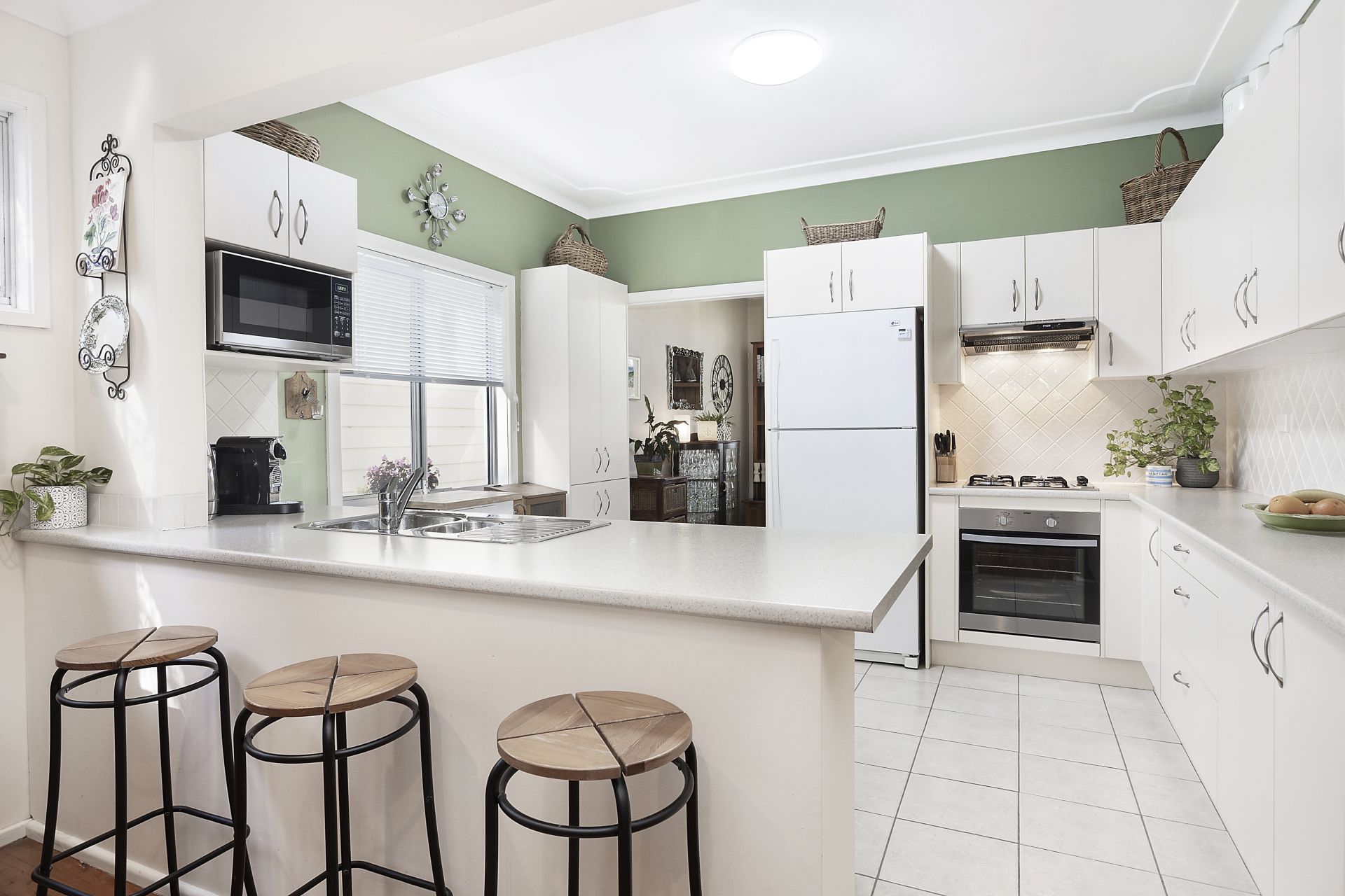 - Stylish kitchen with ample storage, gas cooking, breakfast bar seating