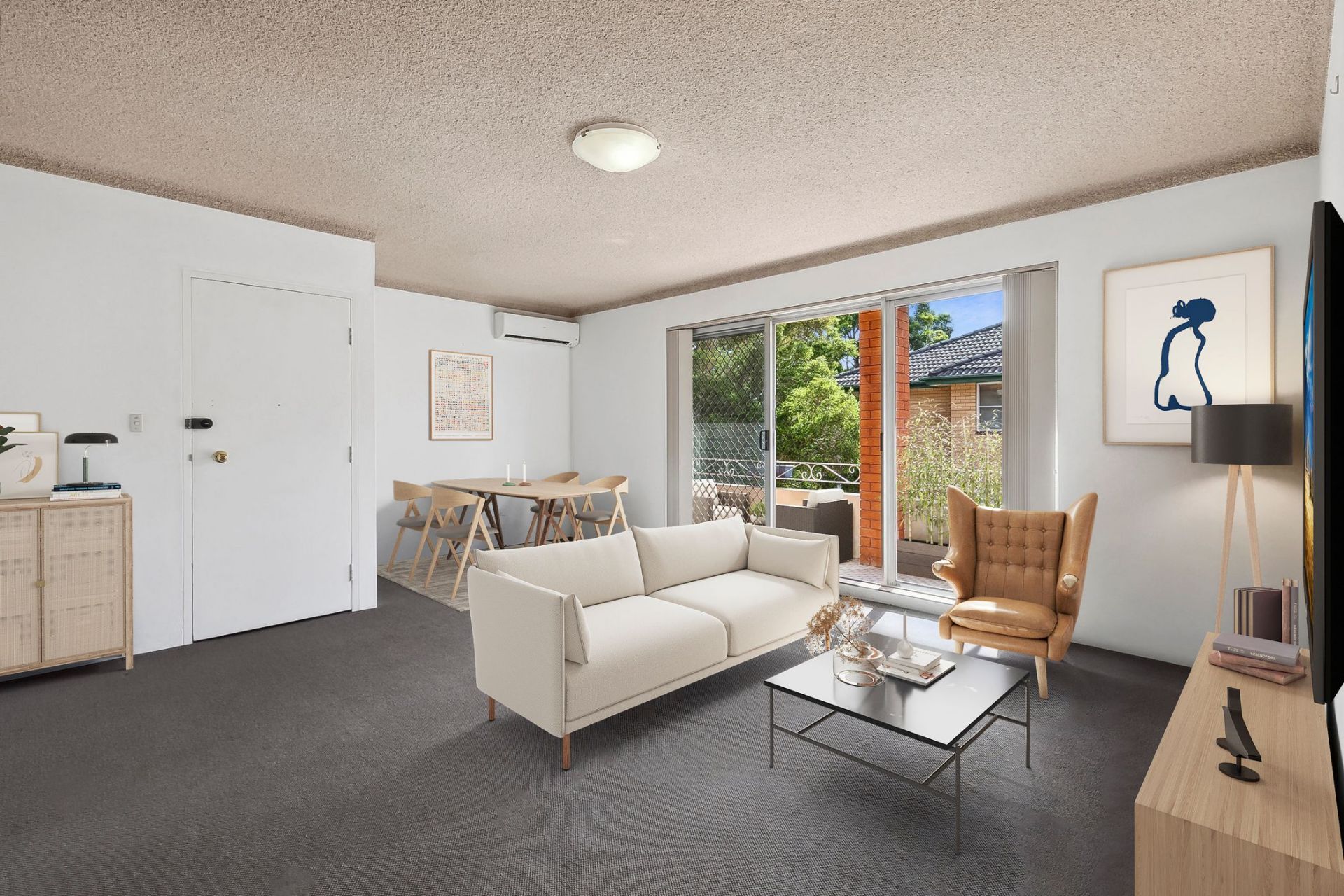 - Large living and dining area with split system air conditioning
