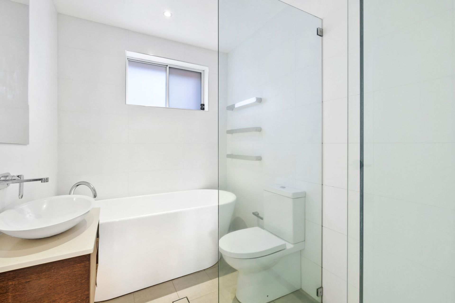 - Stylish bathroom with separate bath and shower