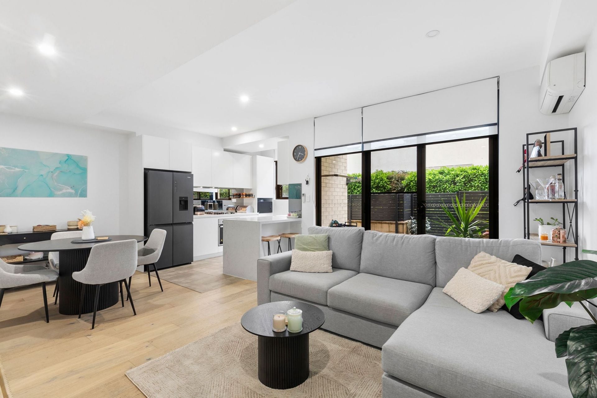- Light filled living and dining flowing into kitchen
