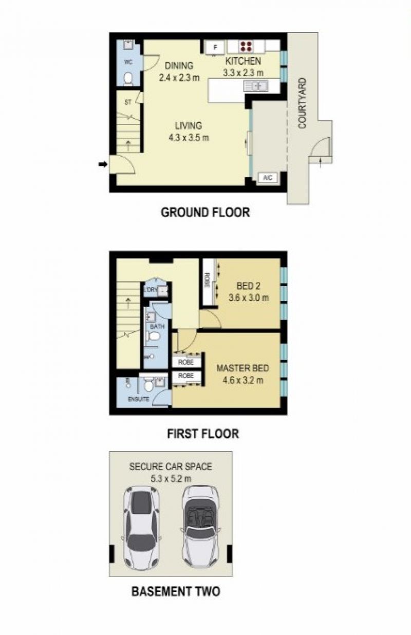 - Two car spaces side by side