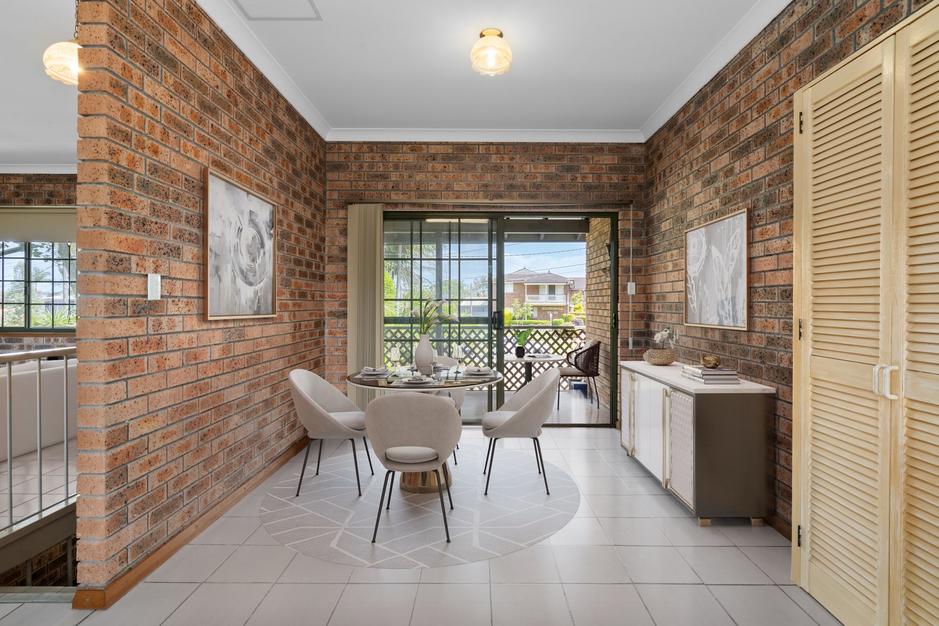 - Large living area with leafy views and split system AC