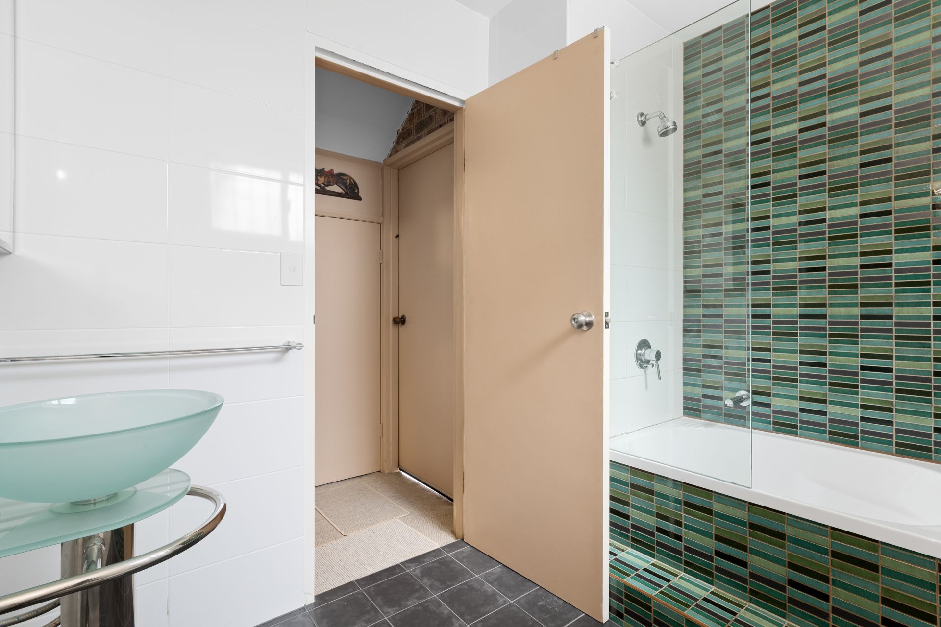 - Main bathroom with combined bath and shower