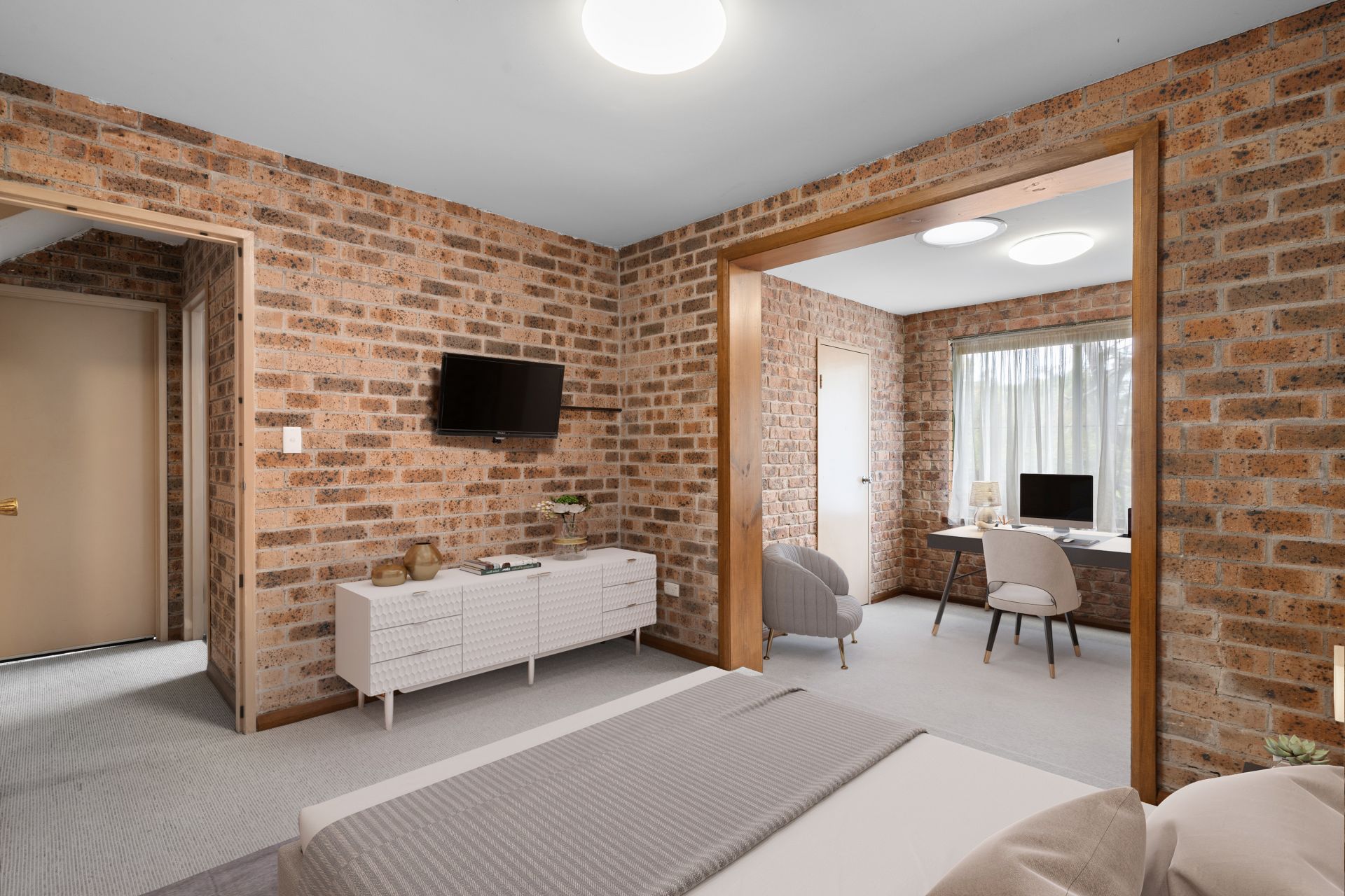 - Two bedrooms with built ins, main bedroom with powder room
