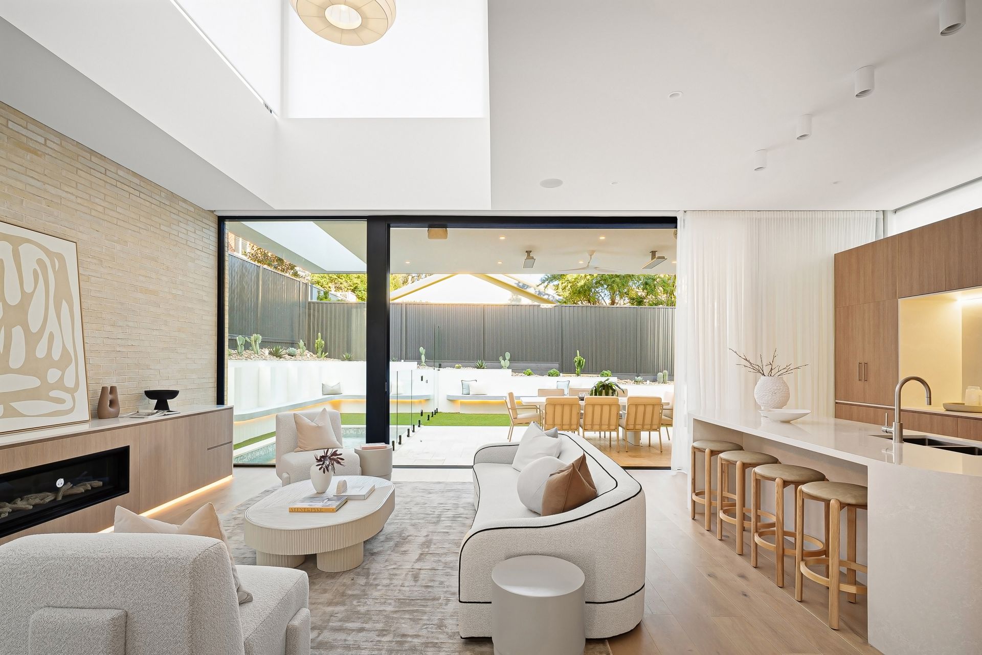 From concept to completion, every aspect of Bianco has been thoughtfully curated and masterfully executed. At its heart is a one-of-a-kind architectural arch - a striking design statement that anchors the home with elegance and intent. This sculptural element is complemented by custom brickwork that flows seamlessly throughout the property, from the entrance, to a centerpiece courtyard capturing natural light, adding warmth, texture, and a tactile richness that elevates the entire residence.