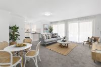 - Spacious open-plan living and dining area with timber-style flooring and access to a generous balcony