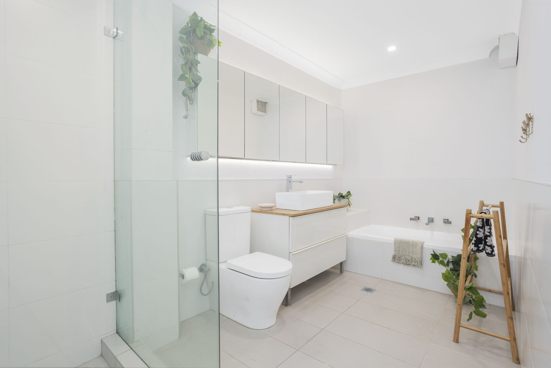 - Modern bathroom with separate bath/shower and internal laundry