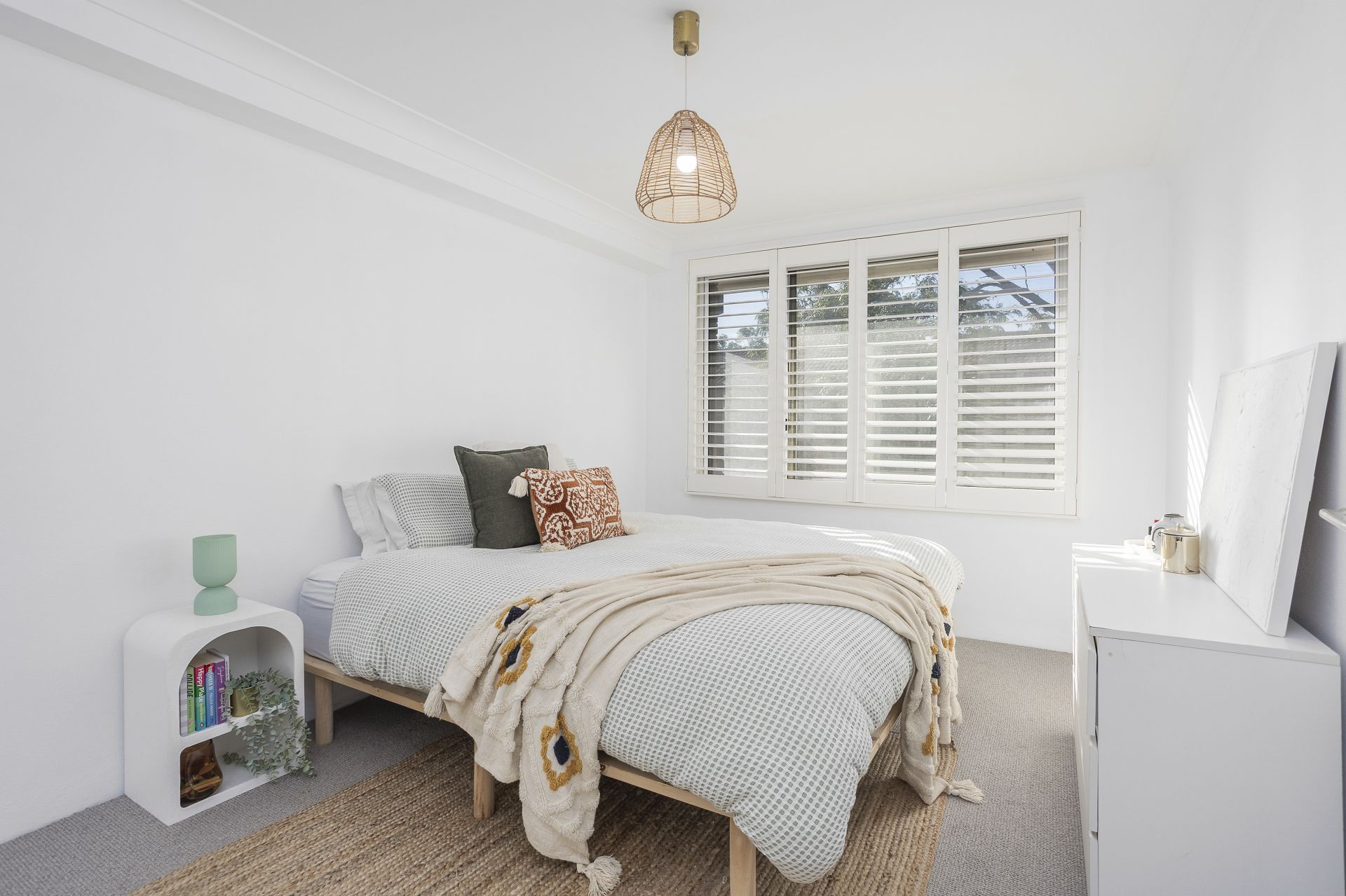- Two light-filled bedrooms, both including built-in wardrobes and plantation shutters