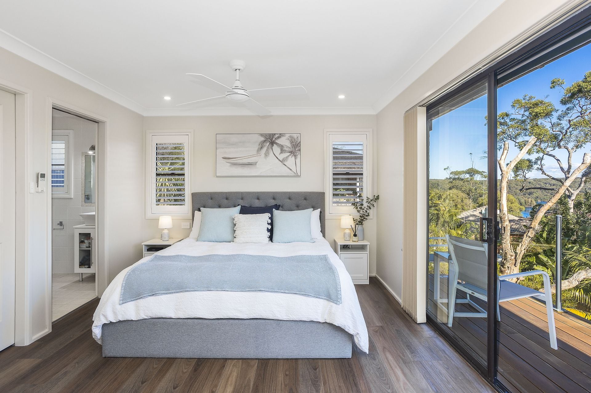 - Master suite includes a spacious ensuite, walk-in robe, split system A/C and access to a private balcony encompassing the water and bushland views
