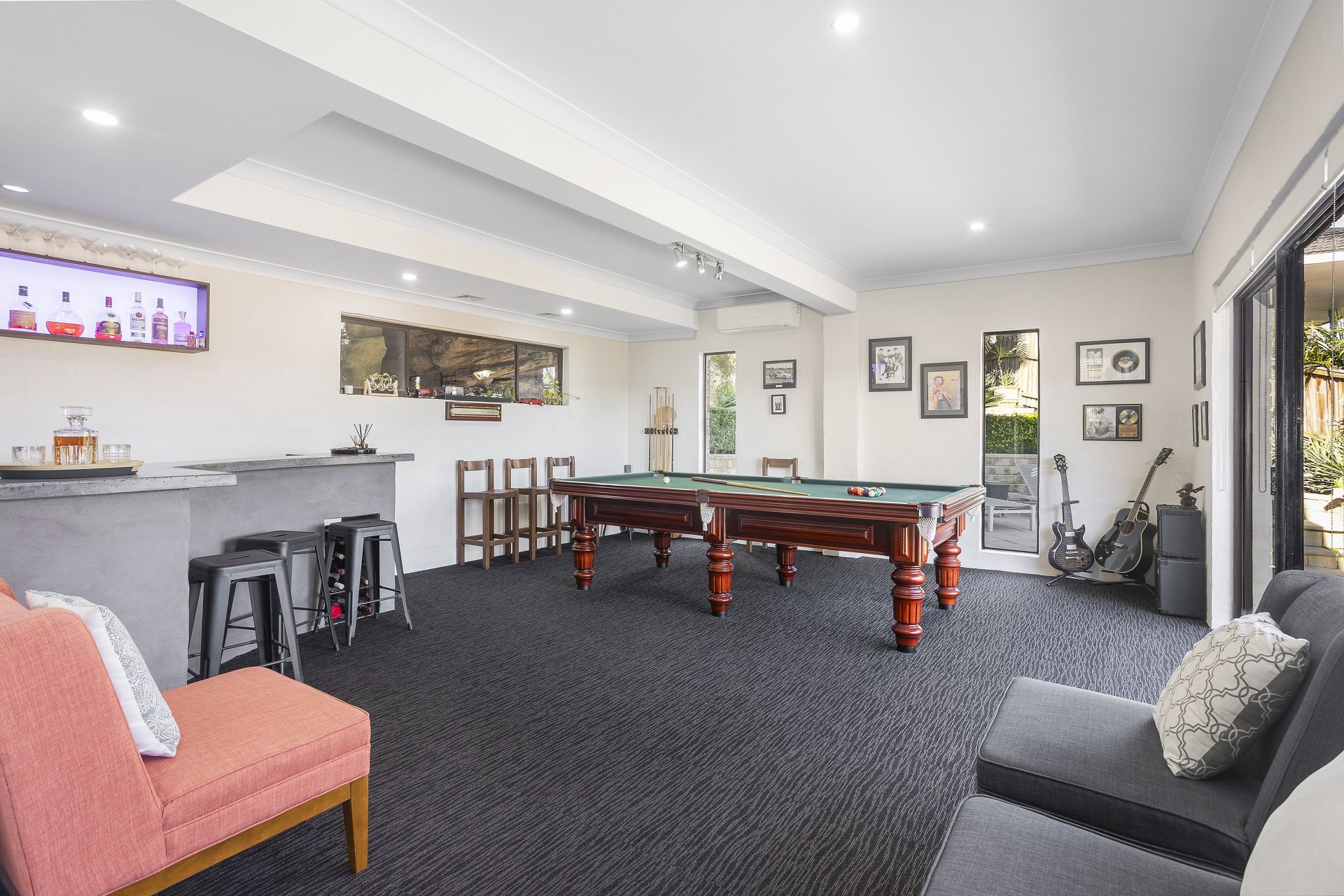 - Multiple living and dining areas, informal dining off the kitchen, formal dining with high ceilings and a huge rumpus/entertaining room with a bar that flows to the pool