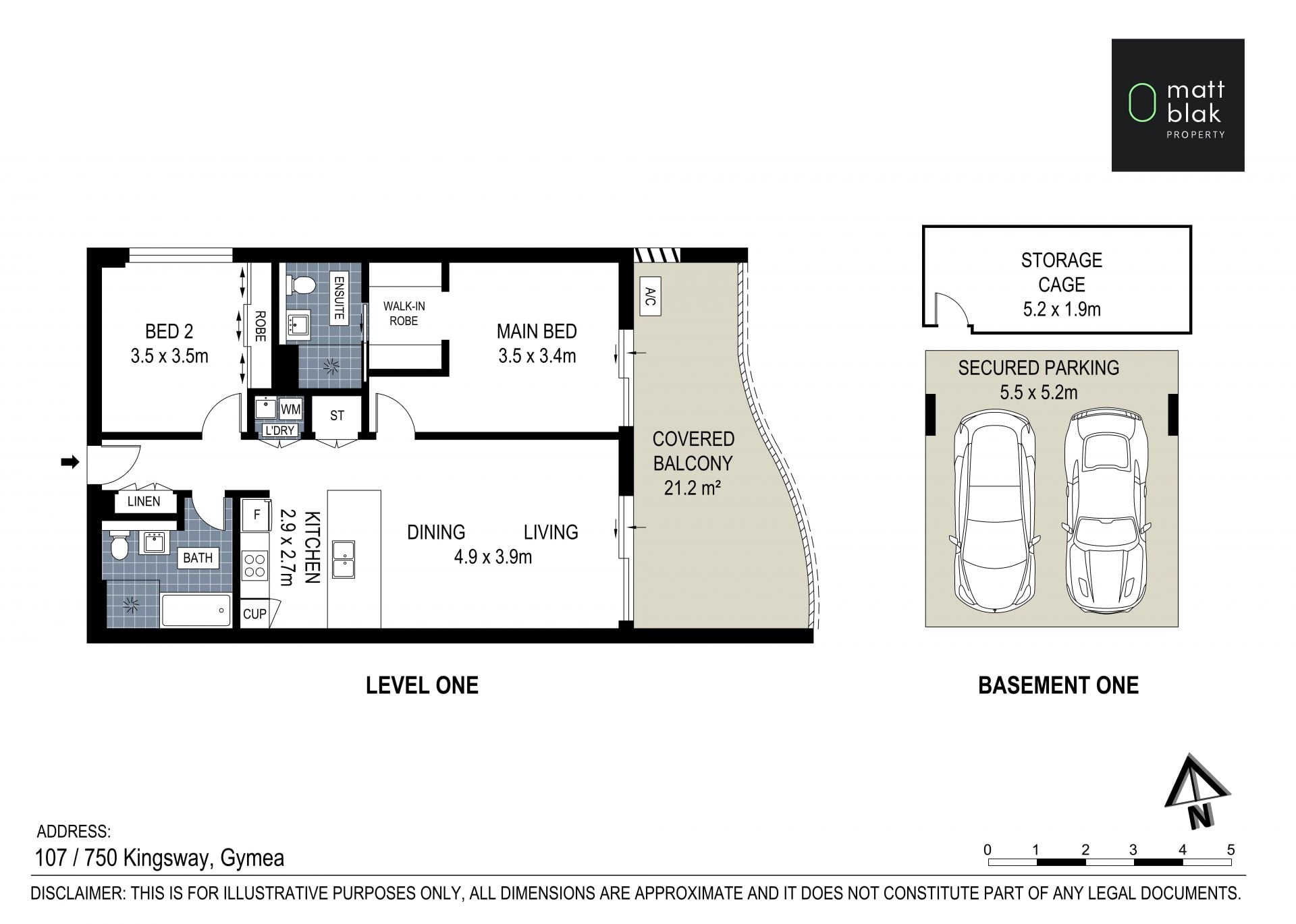 - Internal laundry, intercom security, and storage cage