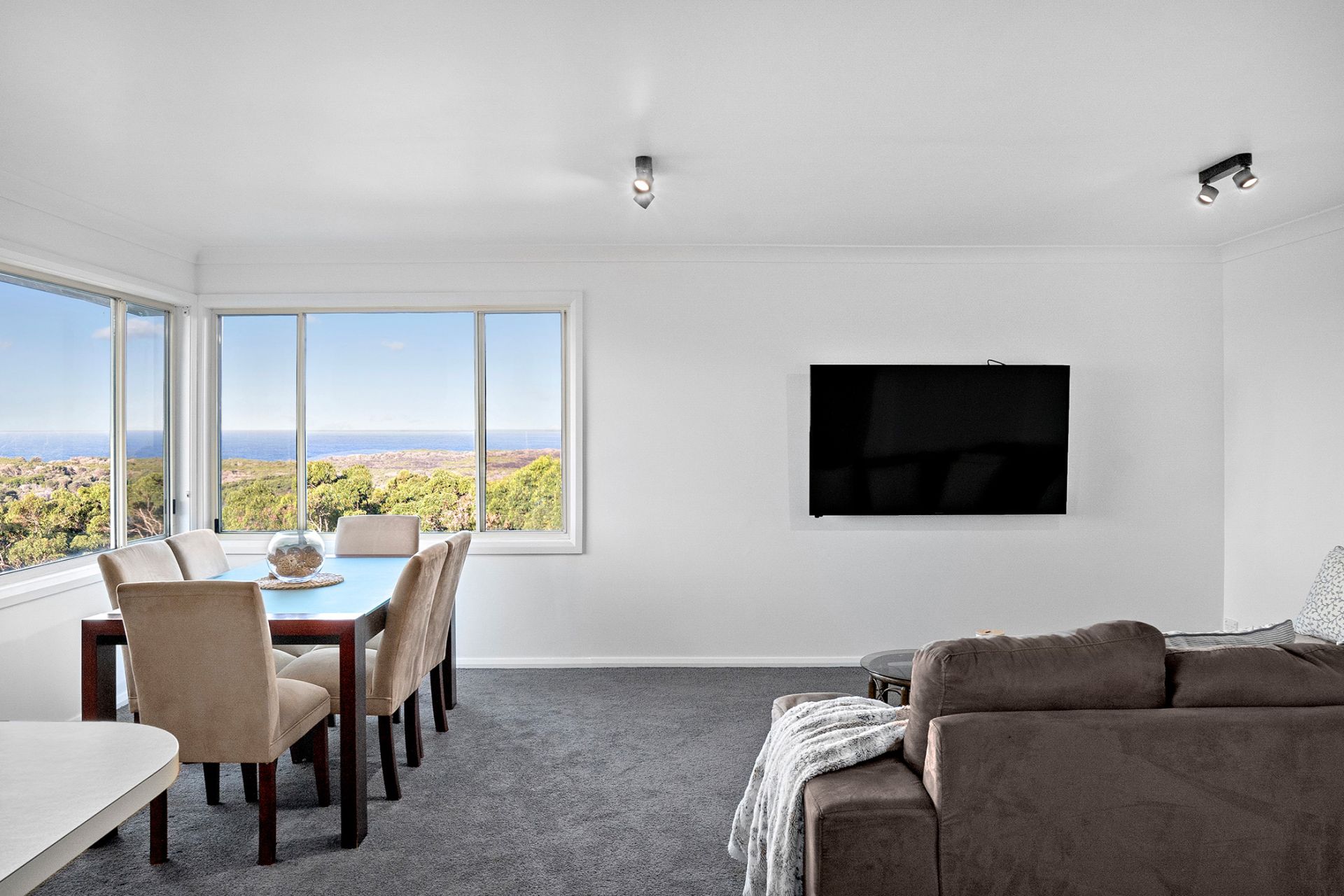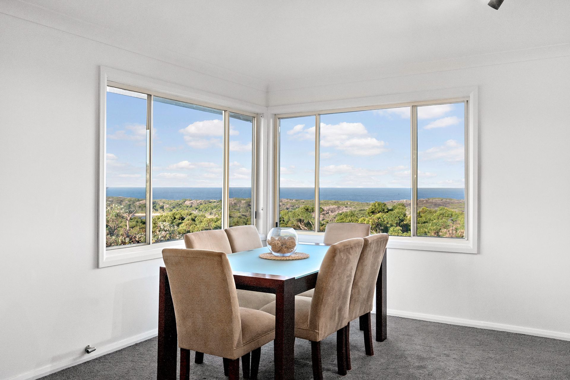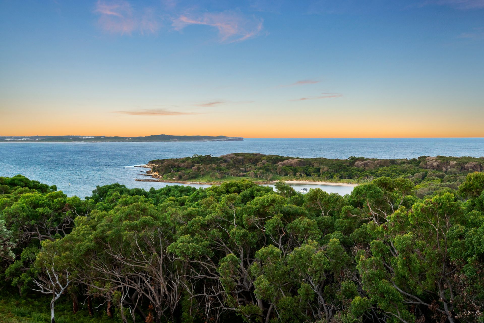 - Elevated position capturing sweeping vistas across the treetops to the ocean