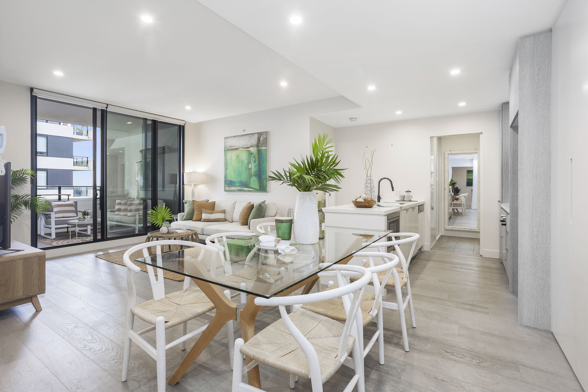 Capturing a prized north-facing aspect, this fifth-floor apartment is filled with natural light and features a versatile layout designed for easy living and entertaining. The open-plan design flows seamlessly from the kitchen, dining, living and study zones to a generous balcony with an outdoor heater, perfect for year-round enjoyment while taking in elevated views. Finished with quality details including engineered timber flooring, abundant built-in storage and linen cupboards, this residence delivers effortless resort-style living just moments from the Woolooware Bay Central precinct with shops, cafés, restaurants and medical services.