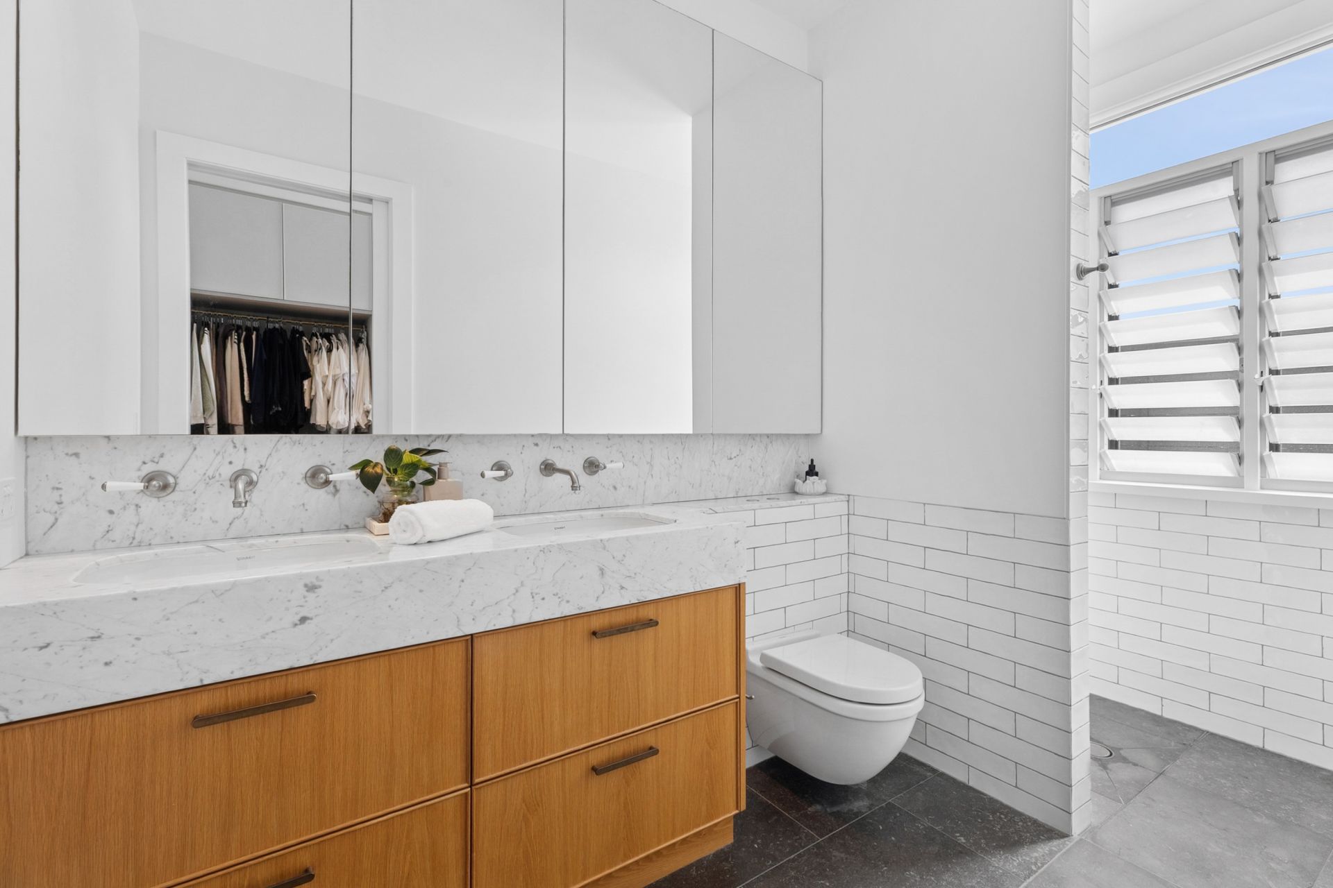 - Italian limestone flooring in bathrooms and laundry, and solid American oak timber throughout