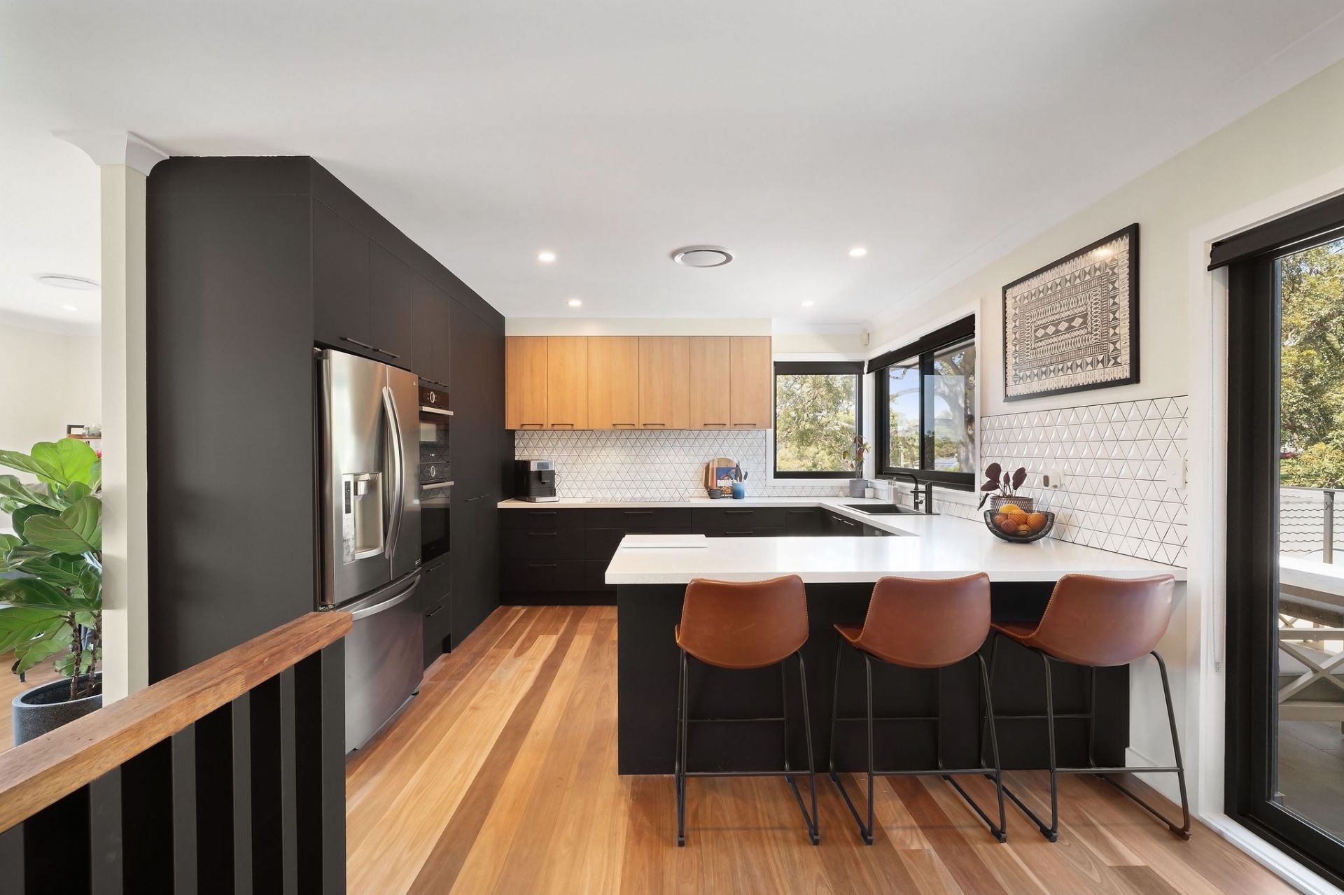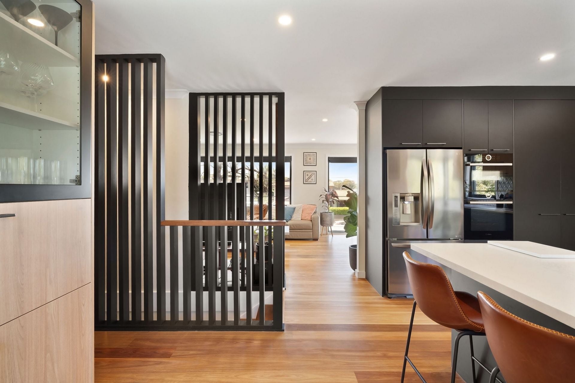 • Designer kitchen with 40mm stone benchtops, Bosch appliances, and breakfast bar