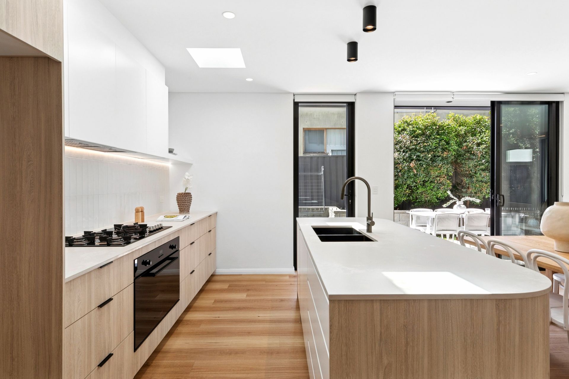 Set within a boutique complex of only 6, the home delivers a thoughtfully crafted layout that maximises natural light and functionality. Downstairs, open-plan living and dining spaces flow seamlessly to a private courtyard and grassed area, perfect for entertaining or relaxed family living. The designer kitchen impresses with stone benchtops, premium appliances, and an oversized walk-in pantry, catering to those who love both style and practicality.