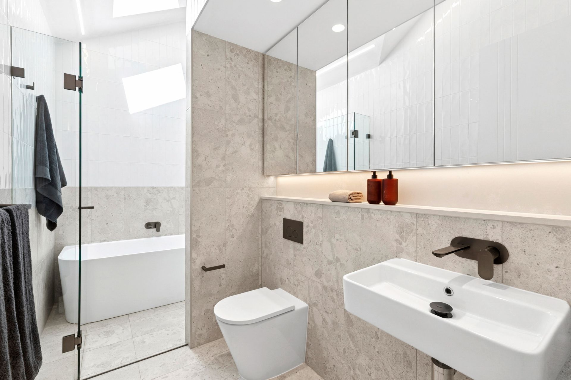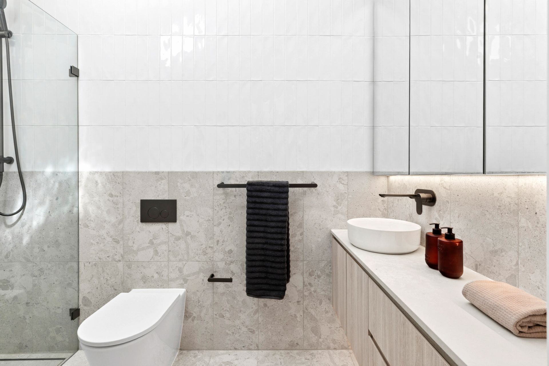 A ground-floor bedroom and full bathroom add versatility for guests or multigenerational living, while upstairs features a luxurious master suite with ensuite, two additional bedrooms with built-in robes, and a sleek main bathroom. Complete with a double garage and a prime location near Westfield, cafes, and public transport, this home delivers style, privacy, and everyday convenience.