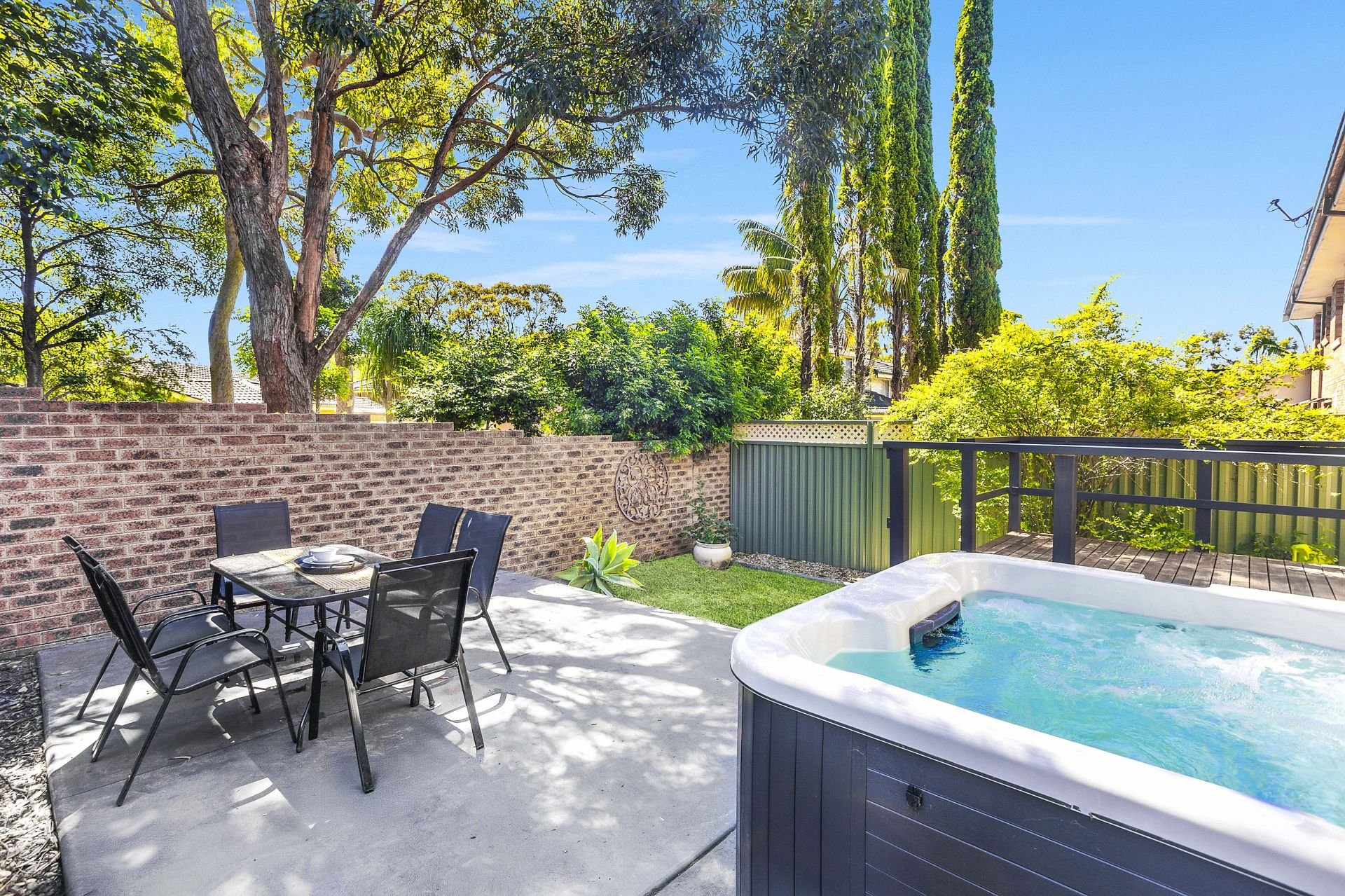 - Spacious, low-maintenance courtyard featuring a small level lawn, entertaining area, and spa