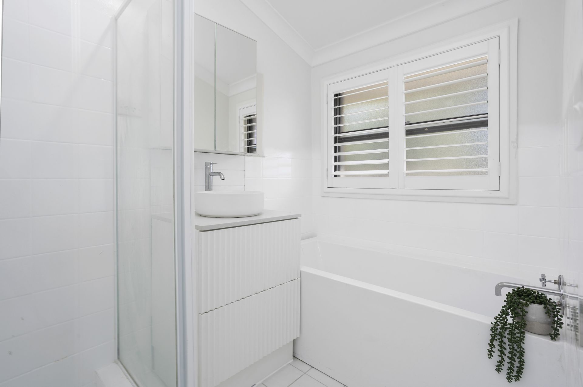 - Generously sized master bedroom with high ceilings, plantation shutters, an ensuite, plus two additional light-filled bedrooms, each with built-in wardrobes and