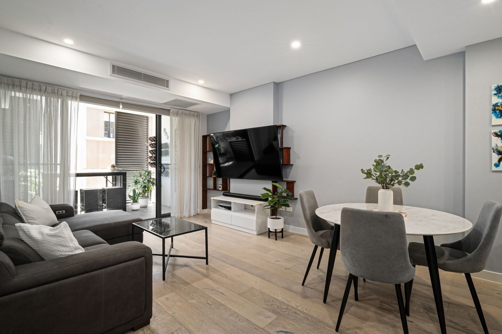 - Open plan living and dining area with air-conditioning flows to a bright north-facing balcony, perfect for relaxing or entertaining