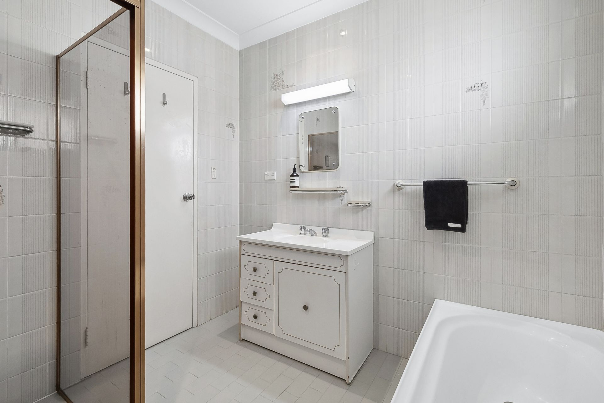 - Neat bathroom with separate bathtub and shower