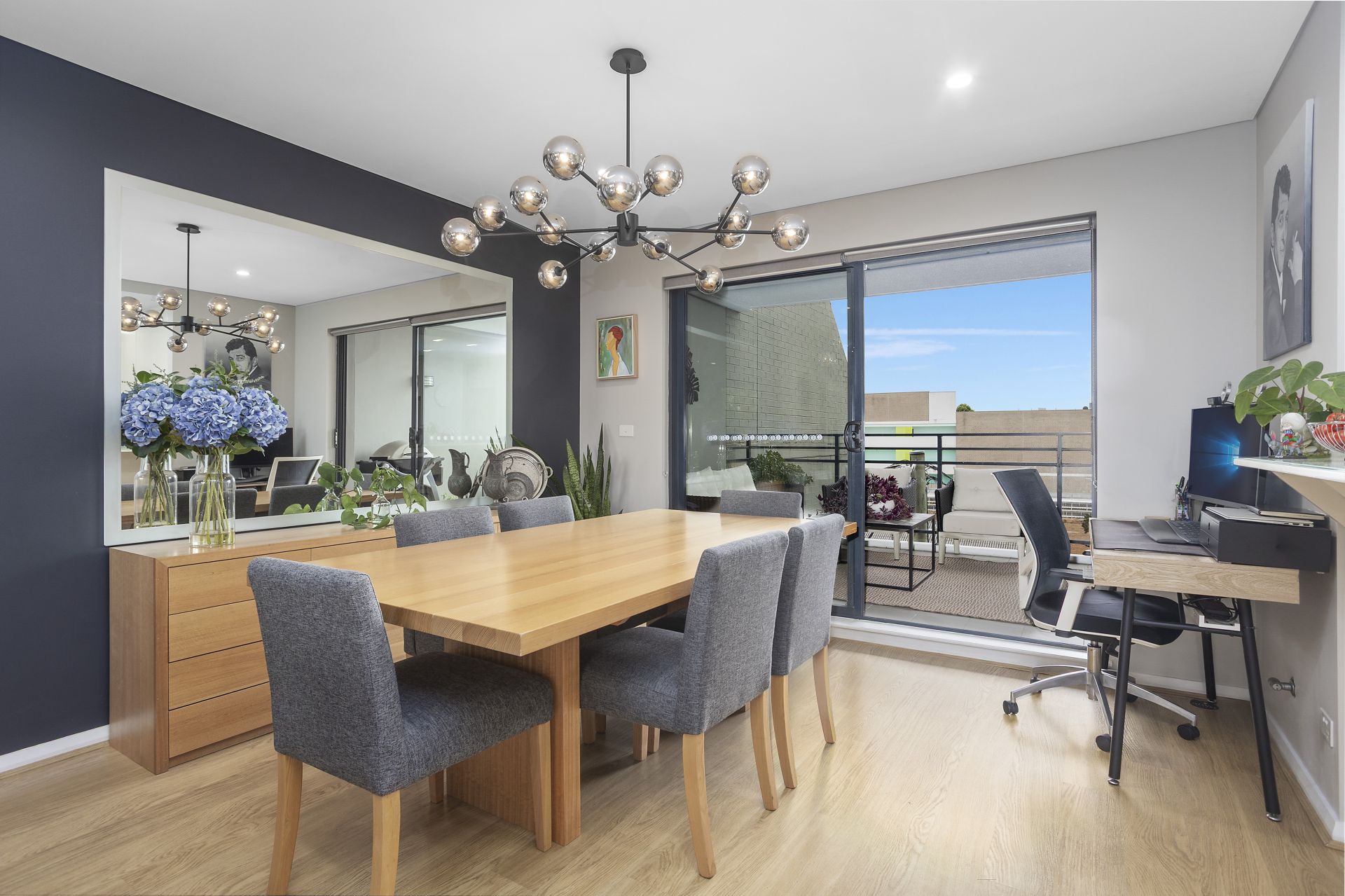 - Open living and huge dining space includes timber flooring, split-system air-conditioning, and built-in cabinetry