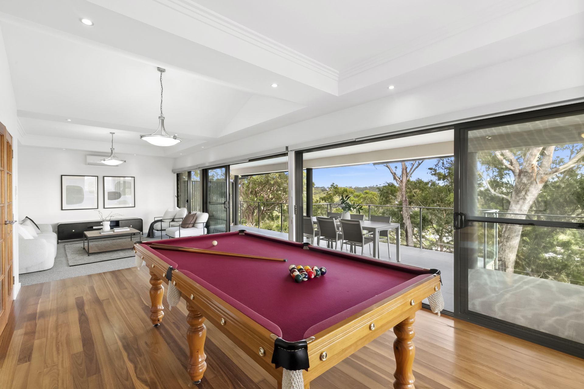 Positioned in one of Sutherland's most sought-after streets, this property offers a peaceful, private and family-friendly lifestyle that will appeal to many. The spacious split-level home is highly functional, featuring multiple living areas and an abundance of space. Beautifully presented throughout, the home has been thoughtfully designed to maximise both space and outlook. Stunning panoramic views over the Woronora River and surrounding areas that can never be built out are enjoyed from the top-floor living and entertaining area, complete with air conditioning, a kitchenette/bar and access to the covered balcony. Four bedrooms include a main bedroom with a modern ensuite and spacious built-in wardrobe. The large kitchen offers an abundance of cupboard and bench space that opens out to the covered outdoor deck, pool and yard area.