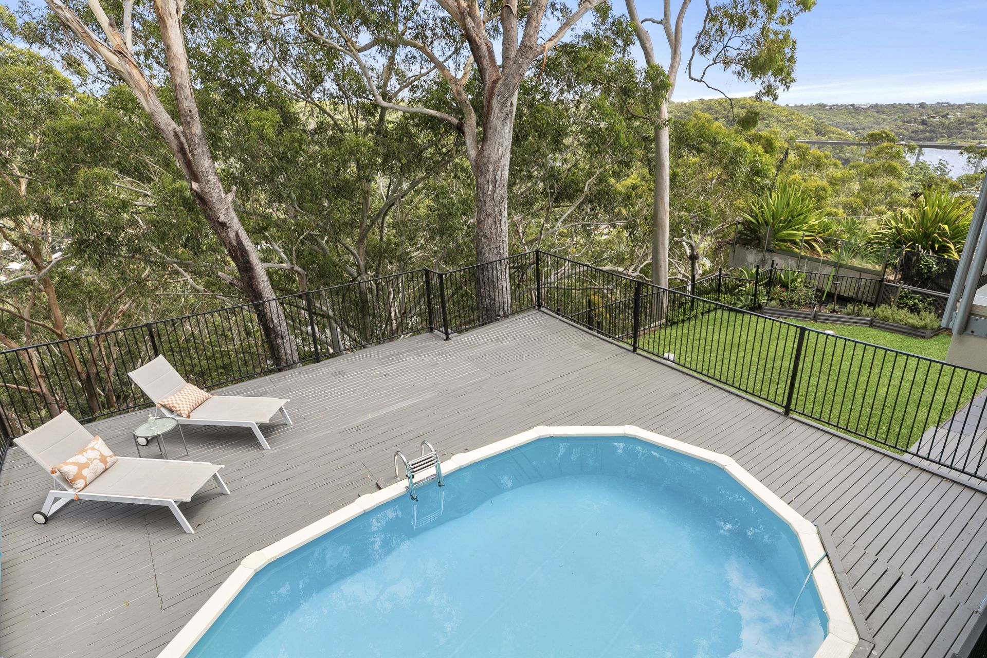 - Full-length balcony capturing stunning views over the Woronora River and bridge, along with outlooks to the pool area below